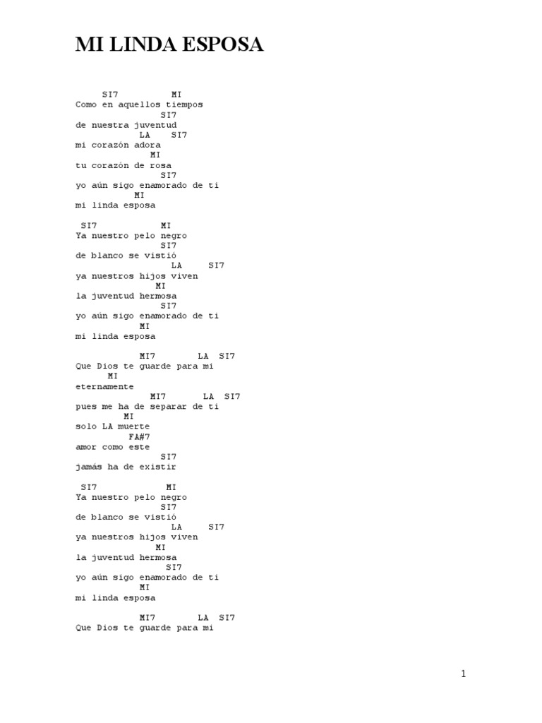 Mi Linda Esposa Letra Y Acordes : F#7 a# yo aun sigo enamorado de ti mi linda esposa.